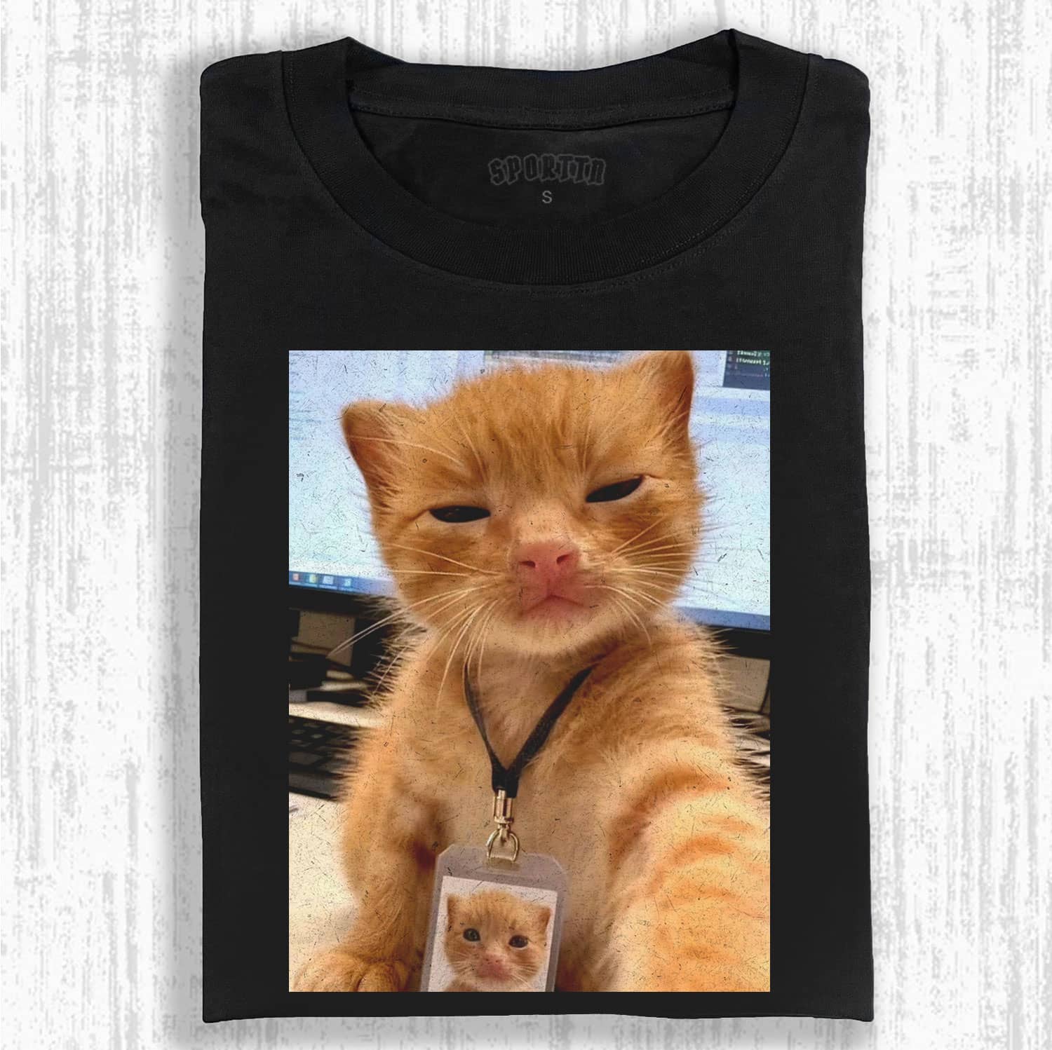 Office Cat The Cute Orange Cat with an ID Badge T-shirt